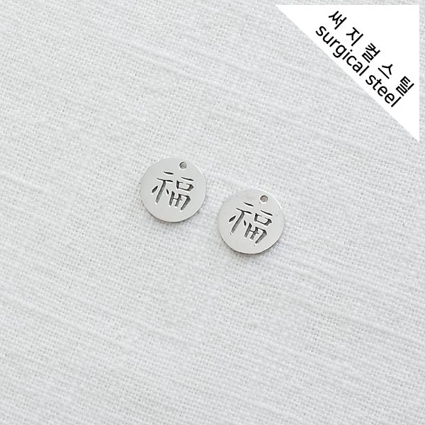 [5-6747-08] 써지컬스틸 팬던트 납작 펀칭 복(福)자 10mm [10개]