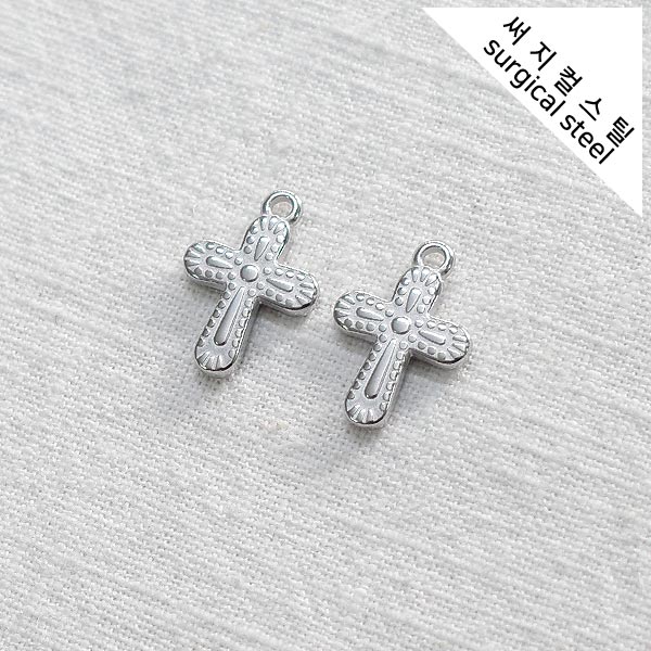 [5-6696-14] 써지컬스틸 팬던트 도트무늬 라운딩 십자가 13.5*19mm [10개]