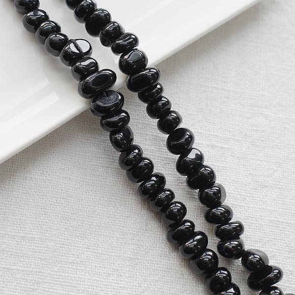 [4-9935-06] 원석 납작못난이 / 블랙트루마린 6*8mm [3줄(약39cm*3)]