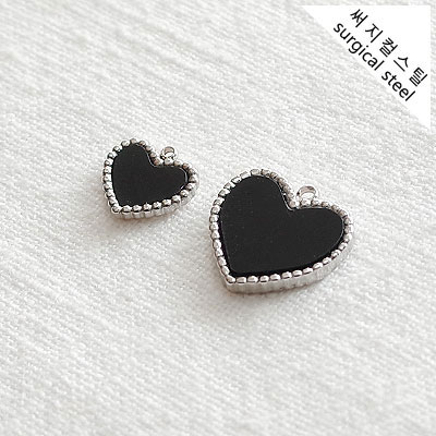 [5-6528-03] 써지컬스틸 팬던트 블랙도트하트/소 10.5*10mm [10개]