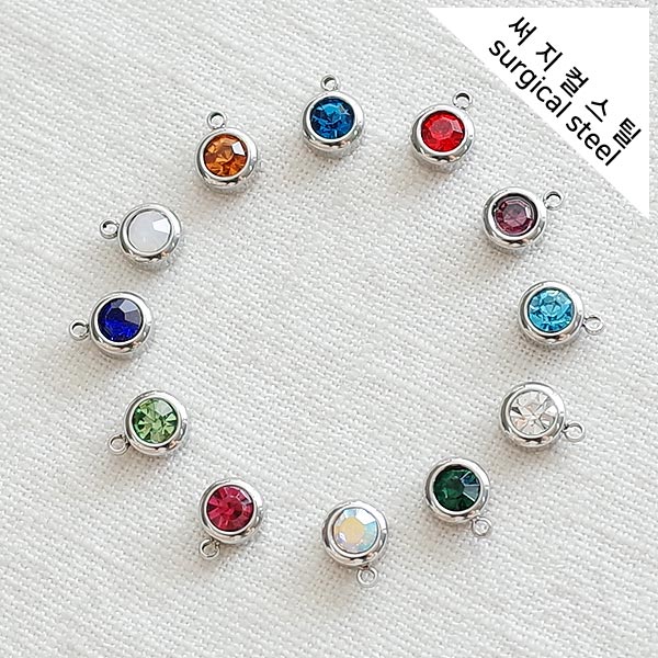 [5-6688-02] 써지컬스틸 팬던트 라운드큐빅 탄생석 6*8mm [10개]