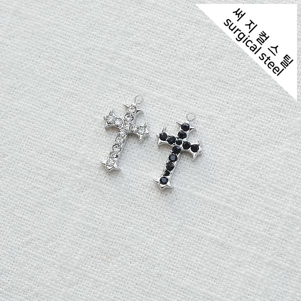 [5-6767-09] 써지컬스틸 팬던트 스톤 뾰족십자가 10*17mm [10개]