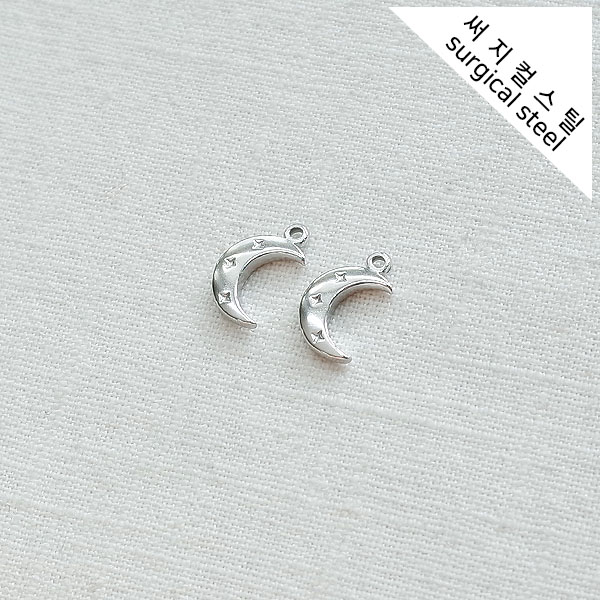[5-6607-10] 써지컬스틸 팬던트 트리플큐빅 민자 달 9*15mm [10개]