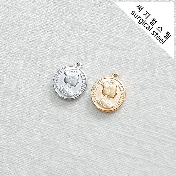 [5-6623-02] 써지컬스틸 팬던트 엘리자벳 양면코인 14.5*17mm [10개]