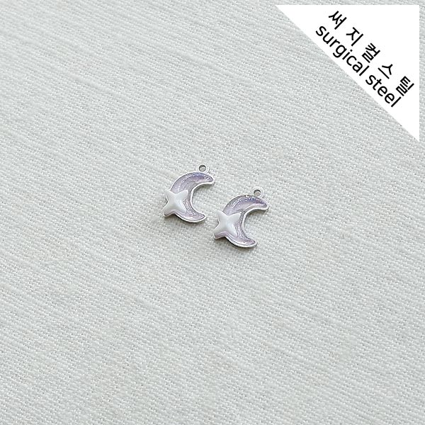 [5-6646-12] 써지컬스틸 팬던트 글리터 퍼플 달 8.5*11.5mm [10개]