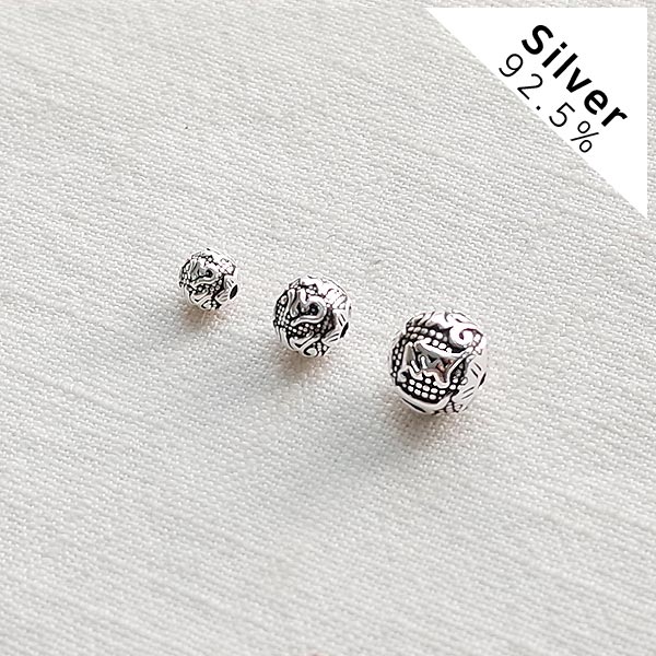 [7-2010-02] 은(silver) 주물볼 옴마니반메훔 6/8/10mm 엔틱(광처리) 실버925 [3개]