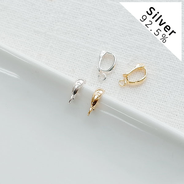 [7-2005-16] 은(silver) 둥근 사각고리 마감장식 8*16mm 무도금 실버925 [2개]