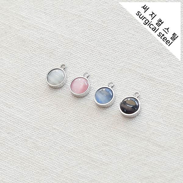 [5-6616-04] 써지컬스틸 팬던트 캣츠아이 미니라운드 7*9.5mm [10개]