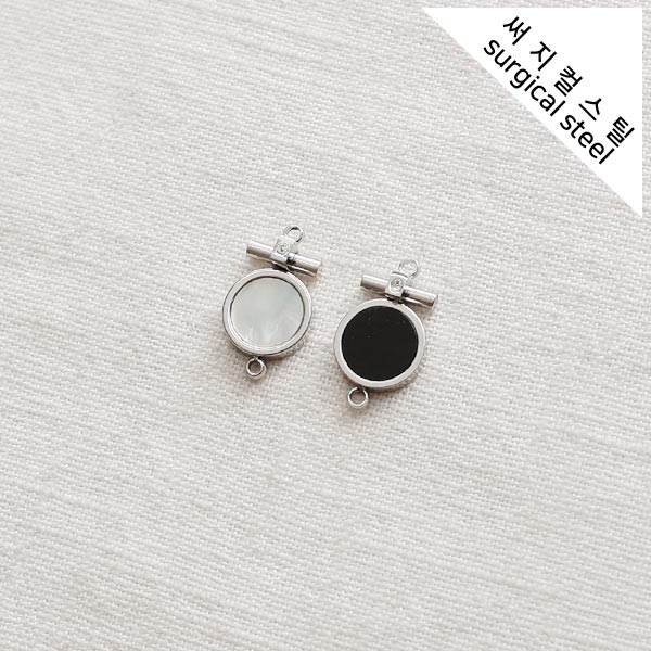 [5-6667-01] 써지컬스틸 팬던트 양고리 큐빅토글 자개/블랙 10*18mm [10개]