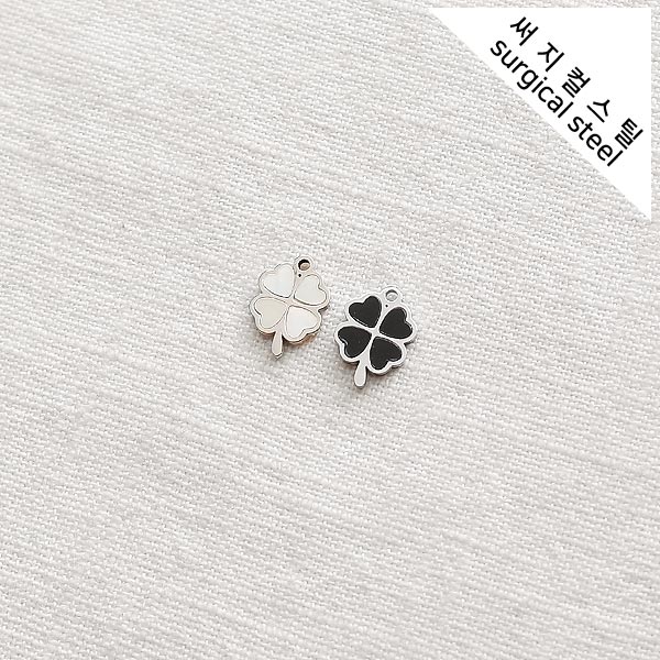 HOME > 팬던트 > 써지컬스틸 > [5-6667-04] 써지컬스틸 팬던트 납작 네잎클로버 자개/블랙 8*11mm [10개]