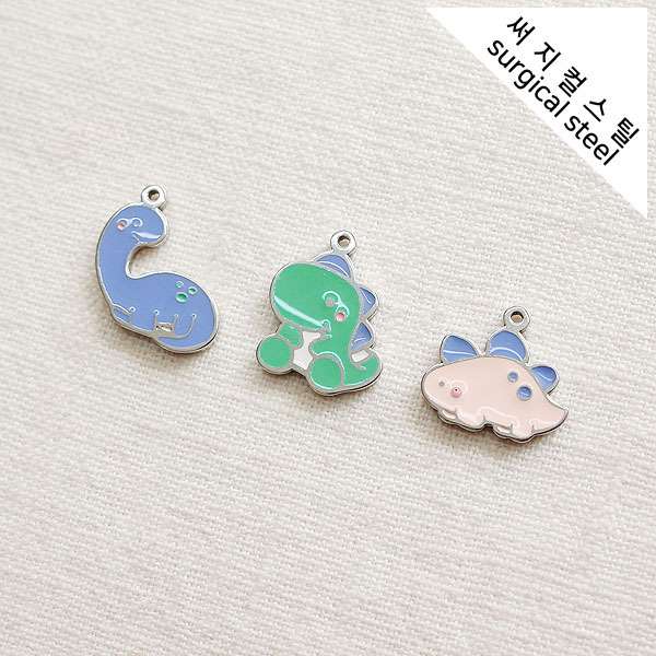 [5-6668-02] 써지컬스틸 팬던트 에폭 공룡캐릭터 [10개]