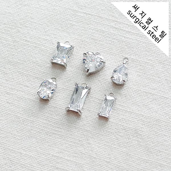 [5-6674-06] 써지컬스틸 팬던트 볼드 도형큐빅 난집 [10개]