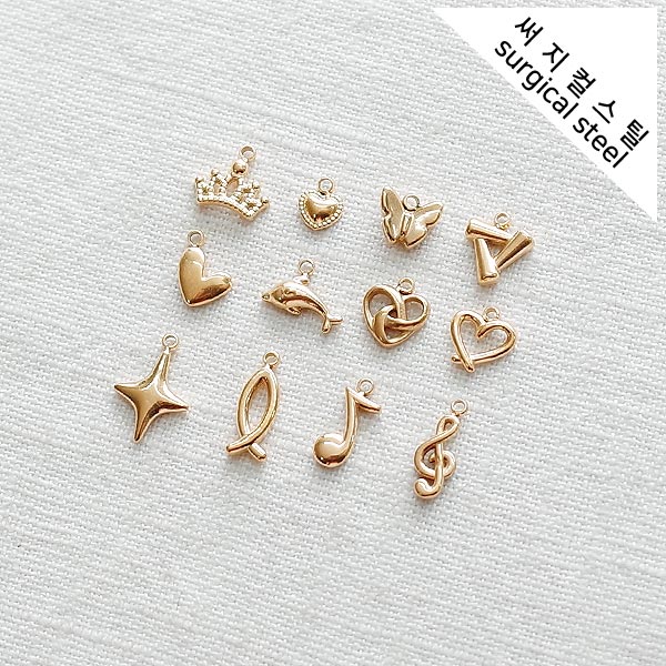 HOME > 팬던트 > 써지컬스틸 > [5-6678-02] 써지컬스틸 팬던트 미니참장식/12가지 골드 [10개]