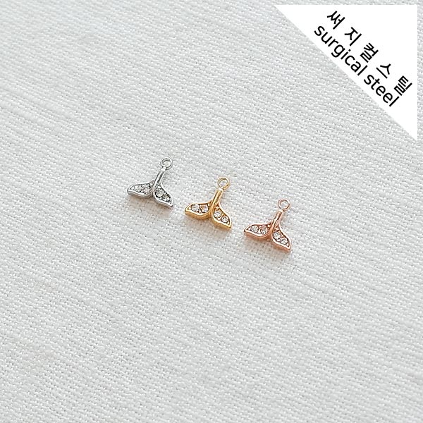 [5-6687-01] 써지컬스틸 팬던트 큐빅 미니고래꼬리 7.5mm [10개]