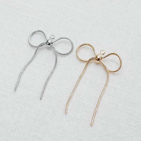 HOME > 팬던트 > 한고리형 > 리본 > [5-2123-01] 팬던트 한고리 뱀줄+볼 리본 26*39mm [10개]
