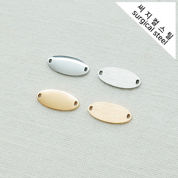 [5-6774-04] 써지컬스틸 팬던트 양고리 타원바(앞면유광/뒷면무광) 16*7mm [10개]
