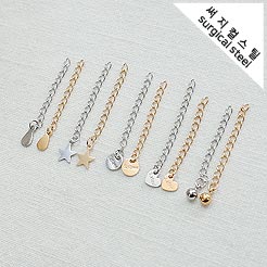 HOME > 부재료 > 마감장식 > 꼬리체인 > [8-1314-01] 써지컬스틸 참장식+꼬리체인(조정자) 약3cm [50개]