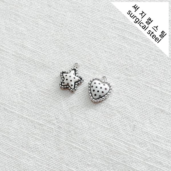[5-6667-13] 써지컬스틸 팬던트 땡땡이 별&하트 [10개]