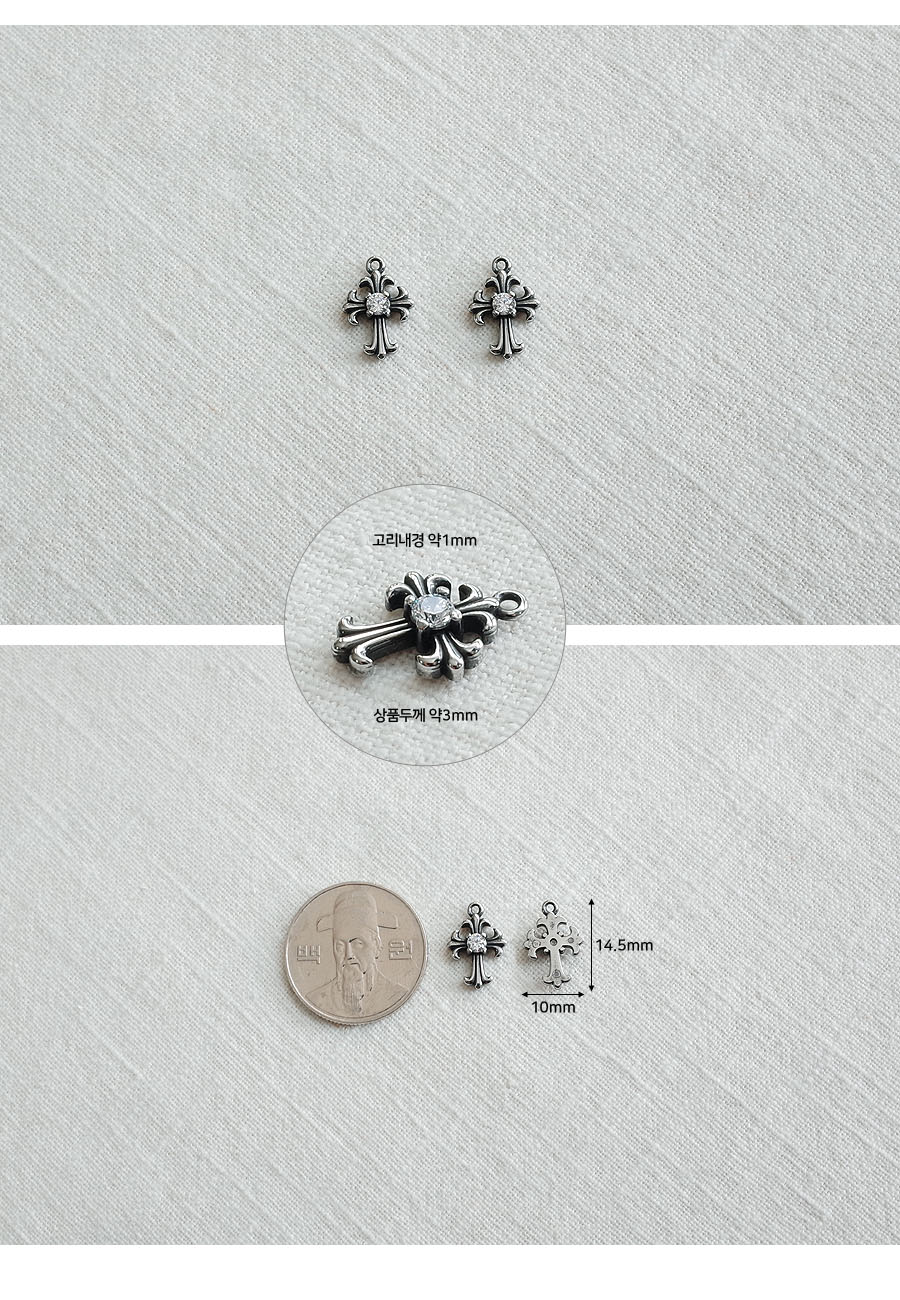 HOME > 팬던트 > 써지컬스틸 > [5-6813-10] 써지컬스틸 팬던트 큐빅 플로럴 십자가 10*14.5mm [10개]