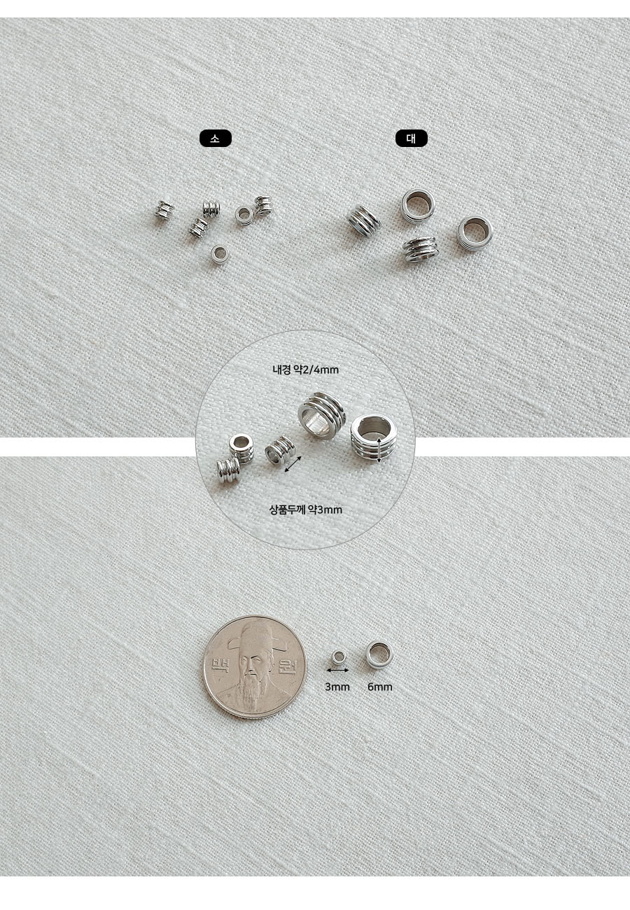 HOME > 팬던트 > 써지컬스틸 > [5-6813-12] 써지컬스틸 통과형 3단주름 원통 소/대 [100개]