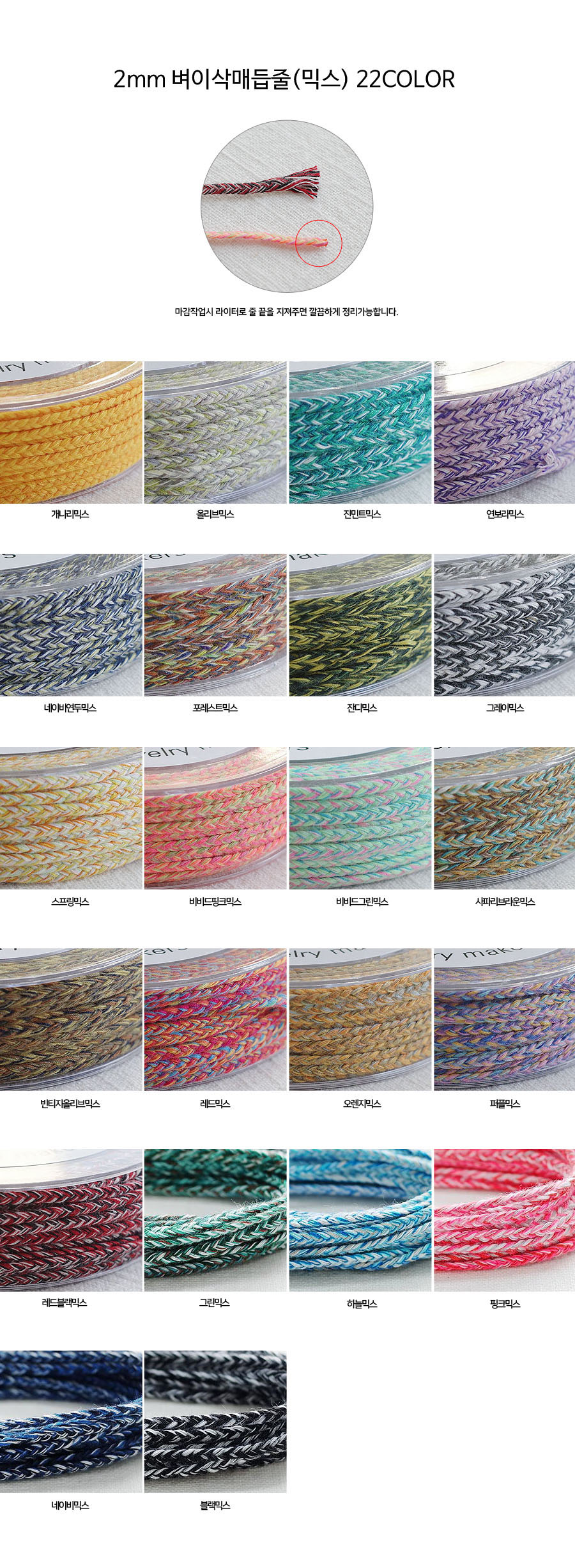 [9-1690-03] 벼이삭매듭줄 2mm 진민트믹스 [1롤]
